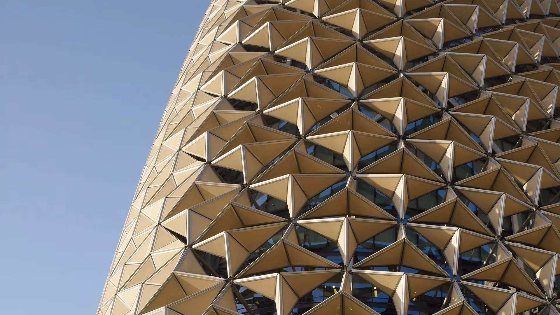 The buildings’ facades have moving elements that open and close like umbrellas, depending on the intensity of natural light. The modular shading system covers all sides, except the north side, which helps to reduce the loss of heat. The design is also meant to lower the towers’ overall energy consumption, such as artificial lighting and air conditioning. The façade resembles a mashrabiya, a traditional style of Arabic architecture.