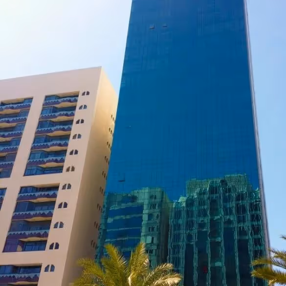 Al Nasr Tower is a 20-storey residential complex located in the Danet Abu Dhabi area. The facade of the building is made of glass, which perfectly blends in with its surroundings, reflecting the modern skyscrapers of the UAE capital.