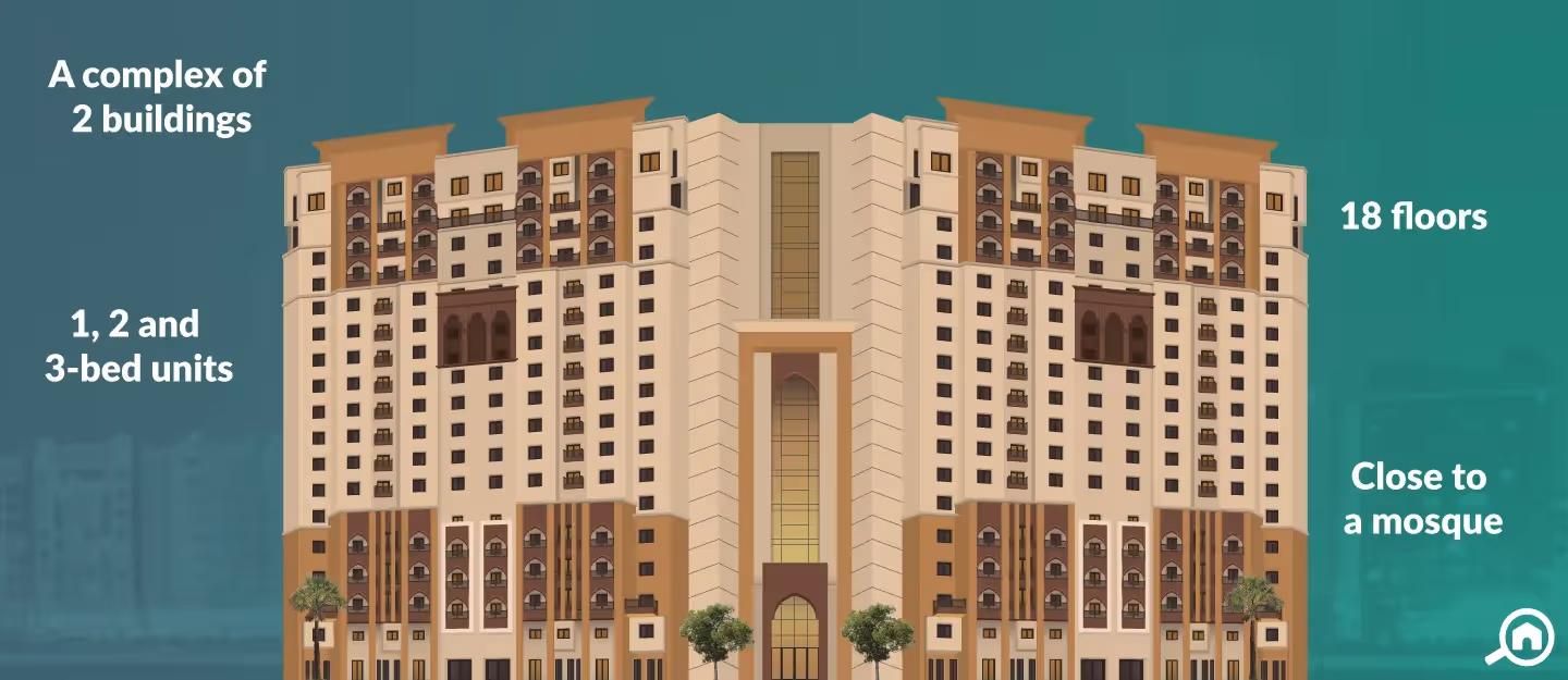 يجمع التصميم الخارجي والداخلي للأبراج بين الاتجاهات المعمارية الحديثة والزخارف العربية التقليدية. تحتوي جميع الشقق على خزائن ملابس فسيحة ومطبخ مفتوح مع الأجهزة وغرف معيشة مع منطقة لتناول الطعام وحمامات مع سباكة ممتازة. تحتوي المساكن على نوافذ بانورامية وشرفات مع إطلالات خلابة على المنتزه ومحيط المدينة. تخطيط المساكن مع 2 و 3 غرف نوم كما يوفر غرفا للموظفين.