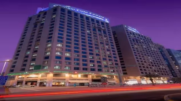 Vision Twin Towers, also known as the Khalidiya Twin Towers, is a 21-storey residential complex, consists of two towers, each with a height of 285 ft.