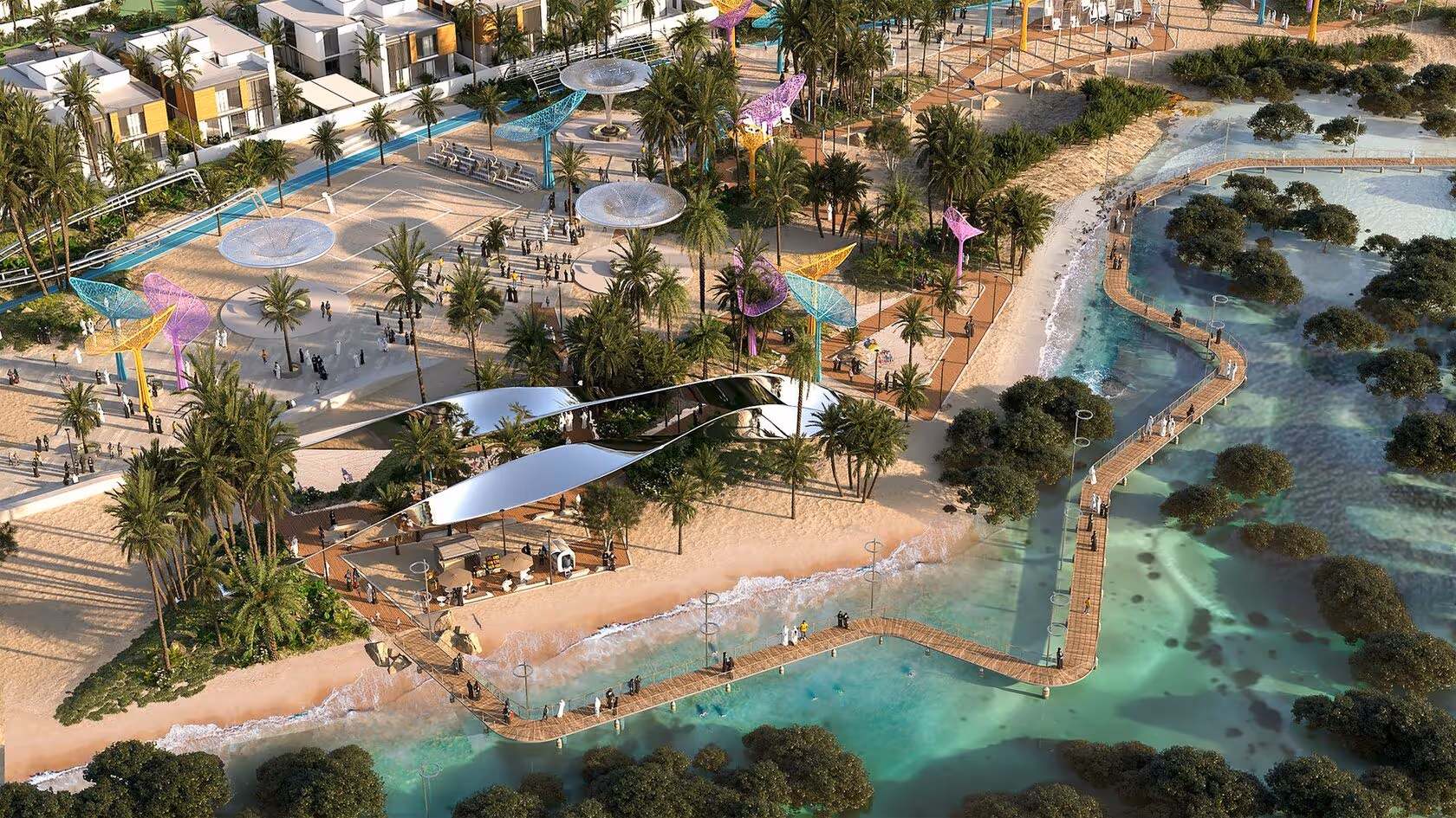 ستقدر العائلات التي لديها أطفال مجموعة متنوعة من مناطق لعب الأطفال، وتوافر مراكز الرعاية النهارية والمدارس، بالإضافة إلى عيادة طبية داخل المجتمع. كما سيتم تخطيط كامل أراضي المجتمع بعناية، ليتوفر فيها المنشآت الفنية ومناطق الترفيه وممشى مع المقاهي ومحلات البيع بالتجزئة والكثير من المساحات للفعاليات والنزهات والشواء وحتى السينما الخارجية. كما أن المشي عبر الحدائق والممر البيئي بين أشجار المانغروف سيمكن السكان من تجربة الهدوء والعزلة مع الطبيعة.