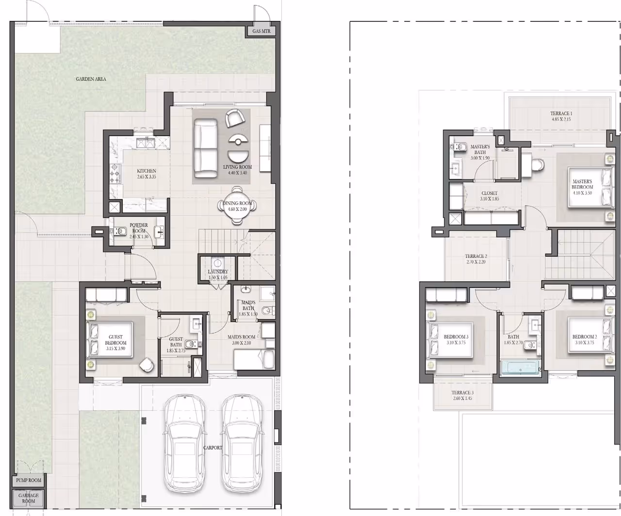 Raya is planned to be completed in July 2026, and the project will consist of elegant two-storey 3–4 bedroom townhouses with living areas from 1,877 sq. ft to 2,354 sq. ft. Residences are offered in two design types, called Modern and Classic. The townhouses will be designed in pastel colours and finished with high-quality tiles, wood and metal. Each residence will have a private garden, a spacious terrace, a staff room and two private parking spaces.