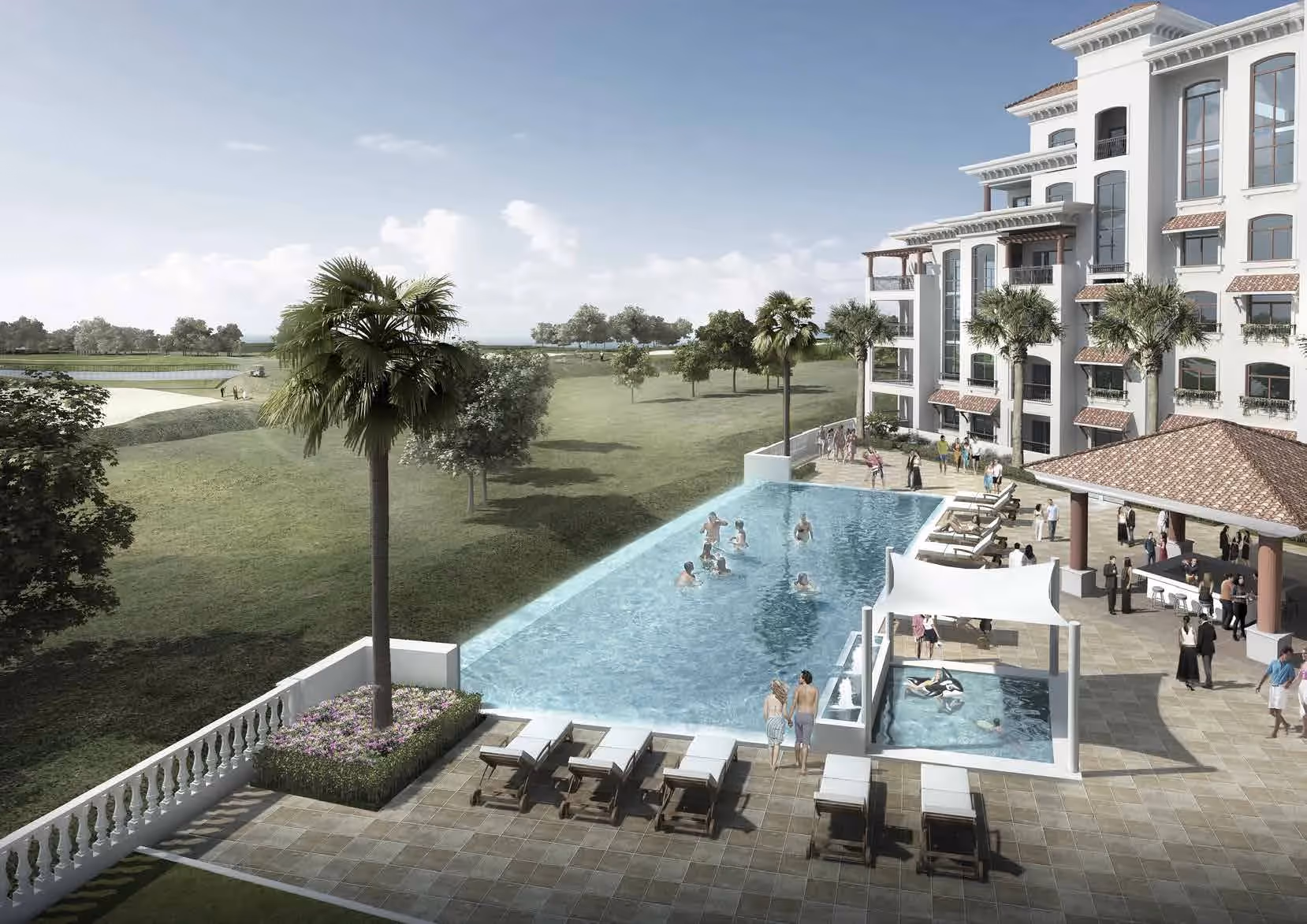 Infinity pools with terraces, pools for children, a gym, bbq zones, outdoor areas for events and many green spaces are available for residents to enjoy.