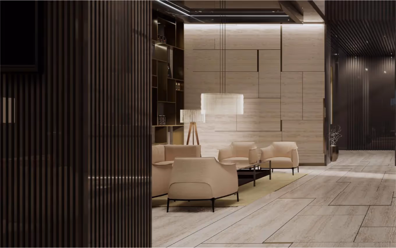 Step into a new world when you enter the foyer at Reem Nine. The reception area has been designed to provide a relaxed, comfortable feeling to its residents, and built with luxury grade craftsmanship forming timeless quality.