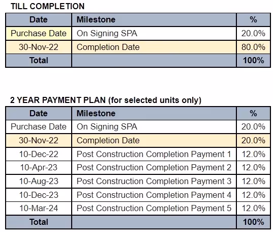 Резиденции имеют внутреннюю отделку в светлых тонах, сантехнику, кухонные гарнитуры и встроенные шкафы. Апартаменты с 2-3 спальнями дополнены комнатами для персонала. Планировки некоторых объектов включают балконы.