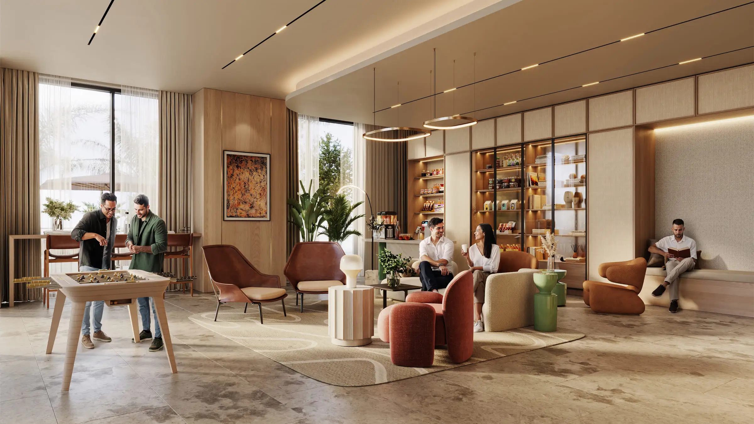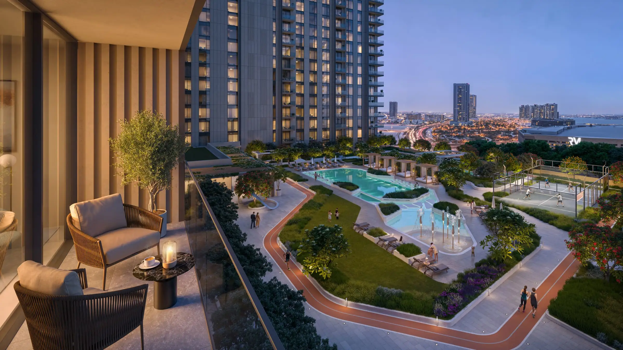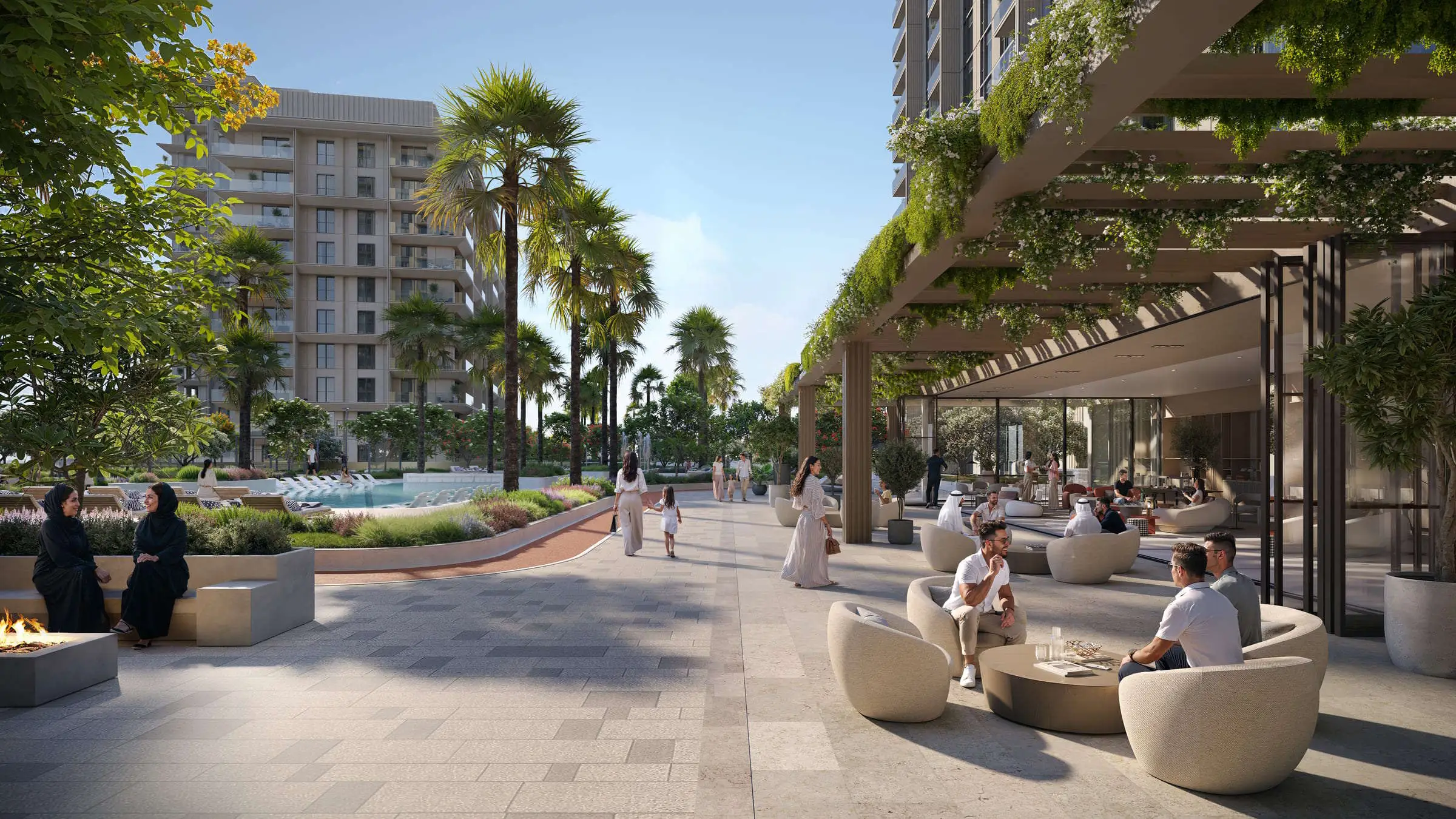 Владельцы жилья получают доступ к разнообразной велнес- и лайфстайл-инфраструктуре, включая центральный бассейн, фитнес-студию, падел-корт, дорожку для пробежек и многофункциональную спортивную площадку. Общественные пространства, такие как коворкинг и зоны для учёбы, открытые обеденные зоны, детские игровые комнаты и рабочие пространства на открытом воздухе создают комфортные условия как для семей, так и для профессионалов.