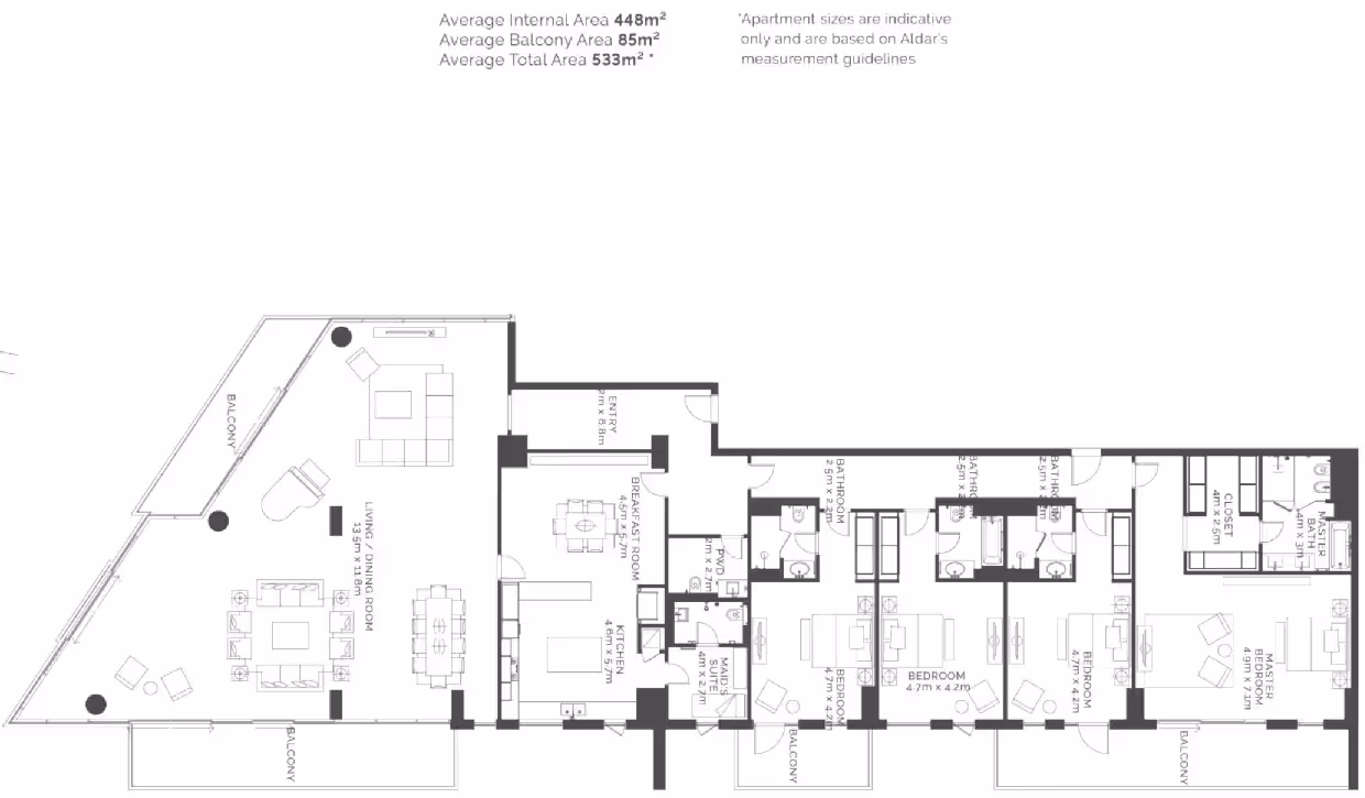 Mamsha Al Saadiyat features 1–4 bedroom apartments, 2–3 bedroom townhouses and a limited collection of nine five-bedroom penthouses. The residences in the development range in size from a generous 1,292 sq. ft to a huge 20,451 sq. ft.